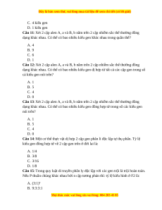 Câu 10: Với 2 alen A và a nằm trên nhiễm sắc thể thường, gen trội là trội hoàn