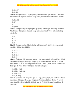 Câu 18: Trong di truyền phân li độc lập (trội hoàn toàn), nếu F1 có n cặp gen dị