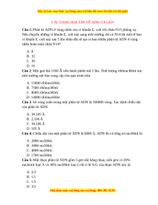 CÁC DẠNG BÀI TẬP VỀ ADN VÀ GEN