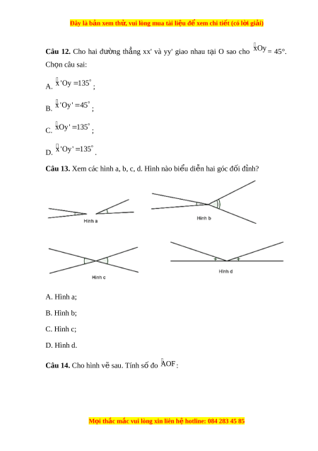 Đây là bản xem th , vu ử i lòng mua tài li u ệ đ xe ể m chi ti t ế (có l i ờ gi i ả ) C. x 'Oy xO y' 60 ; D. x 'Oy 1 20 ; xOy ' 6 0 .
