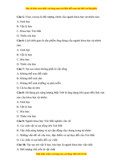 Câu 5: Virus corona là đ i t ng chính c a ngành khoa h c t nhiên nào:ố ượ ủ ọ ự