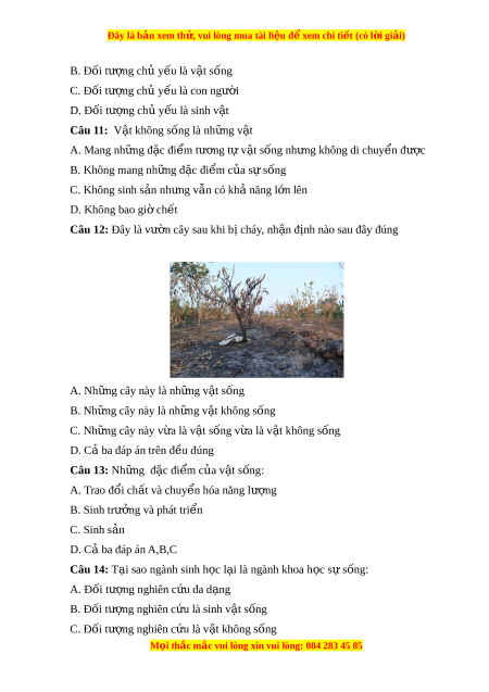Đây là bản xem th , vu ử i lòng mua tài li u ệ đ xe ể m chi ti t ế (có l i ờ gi i ả ) B. Đối tư ng ch ợ ủ y u l ế à v t ậ sống C. Đối tư ng ch ợ ủ y u l ế à con ngư i ờ D. Đ i ố tư ng ợ ch y ủ u l ế à sinh v t ậ Câu 11: V t ậ không sống là nh ng v ữ t ậ A. Mang nh ng ữ đ c đi ặ m ể tư ng ơ t v ự t ậ s ng nh ố ng không di ư chuy n ể đư c ợ B. Không mang nh ng ữ đ c đi ặ m ể c a ủ s s ự ng ố C. Không sinh s n ả nh ng v ư n có kh ẫ năng ả l n l ớ ên D. Không bao gi ch ờ t ế