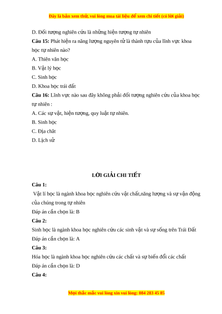 Đây là bản xem th , vu ử i lòng mua tài li u ệ đ xe ể m chi ti t ế (có l i ờ gi i ả ) D. Đ i ố tư ng ợ nghiên c u l ứ à nh ng hi ữ n t ệ ư ng ợ t nhi ự ên Câu 15: Phát hi n r ệ a năng lư ng nguyên t ợ l ử à thành t u c ự a l ủ ĩnh v c khoa ự h c t ọ nhi ự ên nào? A. Thiên văn h c ọ B. V t ậ lý h c ọ C. Sinh h c ọ D. Khoa h c t ọ rái đ t ấ