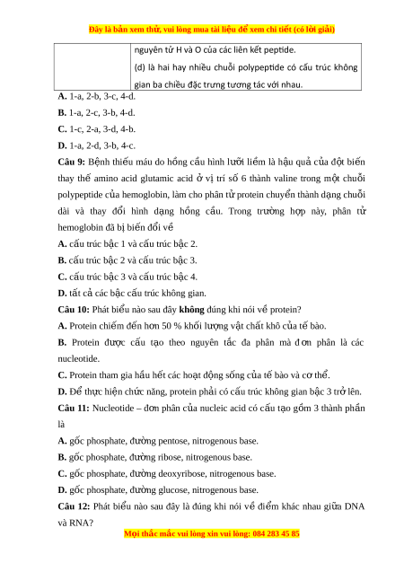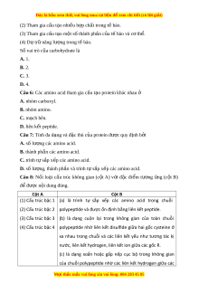 B. thanh phân cac amino acid. C. trinh t s ự p ă x p cac am ê ino acid. D. sô lư ng, ơ thanh ph n va t â rinh t s ự p x ă p cac ê amino acid. Câu 8: N i ô lo i a c u â truc không gian (c t ô A) v i ơ đ c ă đi m ê tư ng ơ ng ư (c t ô B) đ đ ê ư c n ơ i ô dung đung. Cột A Cột B