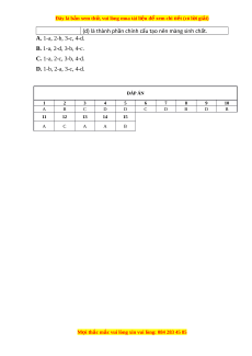 D. Vi DNA có ch c năng b ư o ả v c ệ t ơ h ch ê ng l ô i a s nhi ự m ê virus, vi khu n. â Câu 14: Nhóm phân t ư nao sau đây ch ich a ư phân tư sinh h c o có c u â truc đa phân?