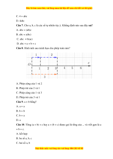 Câu 7. Cho a, b, c là các số tự nhiên tùy ý. Khẳng định nào sau đây sai? A. abc = (ab)c B. abc = a(bc) C. abc = b(ac) D. abc = a + b + c