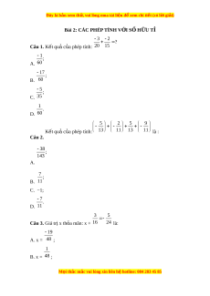 Bài 2: CÁC PHÉP TÍNH V I Ớ S H Ố U Ữ TỈ 3 2 ? Câu 1. K t ế qu c ả a ủ phép tính: 20 15 1; A. 60 17 ; B. 60 5 ; C. 35 1 . D. 60 5 2 5 9 K t ế qu c ả a