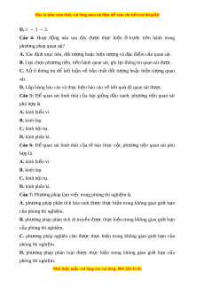 Đây là bản xem th , vu ử i lòng mua tài li u ệ đ xe ể m chi ti t (c ế ó l i ờ gi i ả ) D. 1 → 3 → 2. Câu 4: Ho t ạ đ ng ô nao sau đây đư c ợ th c ư hi n ê ơ b ư c ơ ti n ê hanh trong phư ng ơ pháp quan sát? A. Xác đ nh m i c u tiêu, đ i ô tư ng ợ ho c hi ặ n t ê ư ng va ợ đ c đi ặ m ể c n quan s â át. B. L a ư ch n ph o ư ng t ơ i n, t ê i n hanh quan s ê át, ghi l i