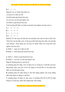 Đây là bản xem th , vu ử i lòng mua tài li u ệ đ xe ể m chi ti t (c ế ó l i ờ gi i ả ) D. 2 → 1 → 3. Câu 11: Cho các bư c ơ th c hi ư n s ê au: (1) Quan sát va đ t ặ câu h i ỏ (2) Hinh thanh gi t a huy t ê khoa h c o (3) Lam báo cáo k t ê qu nghi a ên c u ứ (4) Ki m ể tra gi t a huy t ê khoa h c o Trinh t đung t ư h h ể iên các bư c t ơ rong ti n t ê rinh nghiên c u ứ khoa h c l o a