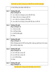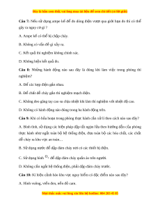 ụ ampe kế để đo dòng đi n ệ vư t ợ qua gi i ớ h n ạ đo thì có thể gây ra nguy cơ gì ? A. Ampe k có t ế h b ể ch ị p ậ cháy. B. Không có v n đ ấ gì ề x y r ả a. C. K t ế qu t ả hí nghi m ệ không chính xác. D. Không hi n k ệ t ế quả đo. Câu 8: Nh ng ữ hành đ ng