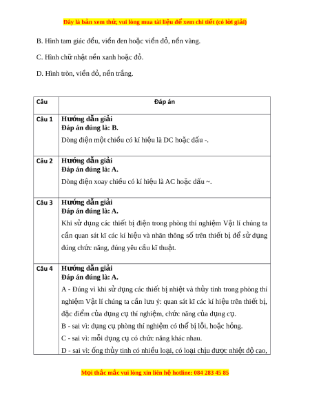 Đây là bản xem th , vu ử i lòng mua tài li u ệ đ xe ể m chi ti t (c ế ó l i ờ gi i ả ) B. Hình tam giác đ u, vi ề n đen ho ề c vi ặ n đ ề , n ỏ n ề vàng. C. Hình ch nh ữ t ậ n n ề xanh ho c đ ặ . ỏ D. Hình tròn, vi n đ ề , n ỏ n t ề r ng. ắ Câu Đáp án Câu 1 Hư ng d ớ ẫn gi i ả