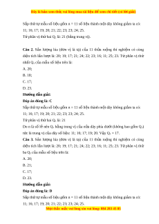 ợ là: 20; 19; 17; 21; 24; 22; 23; 16; 11; 25; 23. T ứ phân v ịthứ hai Q2 c a m ủ ẫu số liệu trên là: A. 20; B. 21; C. 17; D. 23. Hư ng d ớ ẫn gi i ả : Đáp án đúng là: B Mọi th c ắ m c