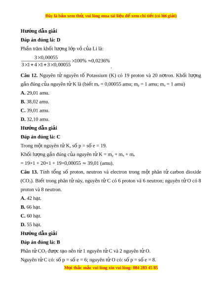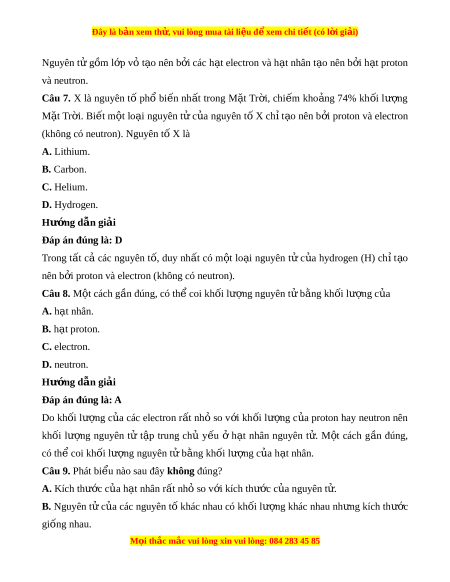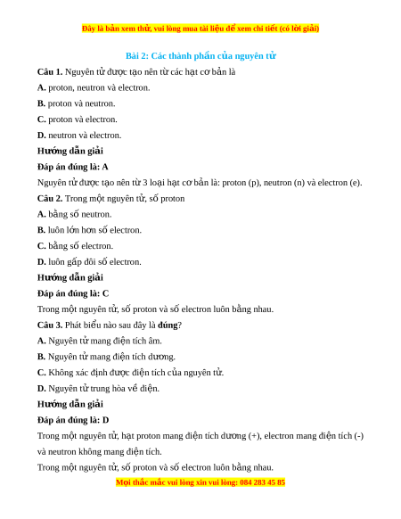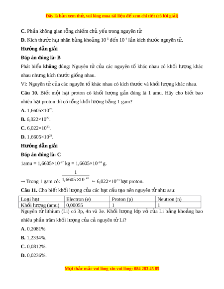 Đây là bản xem th , vu ử i lòng mua tài li u ệ đ xe ể m chi ti t (c ế ó l i ờ gi i ả ) C. Ph n không gi ầ an rỗng chi m ế chủ y u t ế rong nguyên tử D. Kích thư c ớ h t ạ nhân b ng kho ằ ng ả 10-5 đ n 10 ế