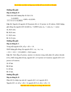 Câu 12. Nguyên t nguyên t Potassium (K) có 19 proton và 20 n tron. Kh i l ngử ố ơ ố ượ