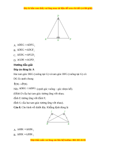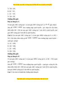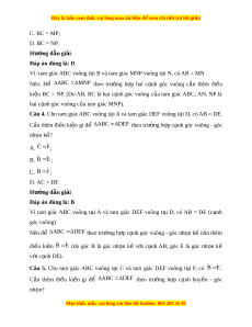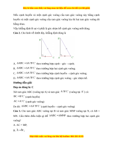 ủ tam giác vuông kia thì hai tam giác vuông đó b ng ằ nhau. Hư ng d ớ ẫn gi i ả Đáp án đúng là: B Các trư ng h ờ p b ợ ng ằ nhau c a hai ủ tam giác vuông • Trư ng h ờ p: ợ hai c nh góc vuông ạ N u ế hai c nh ạ góc vuông c a ủ tam giác vuông này l n ầ lư t ợ b ng ằ hai c nh ạ góc vuông c a