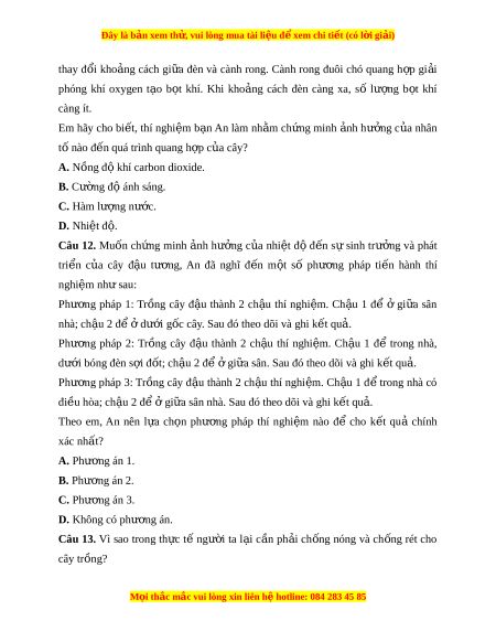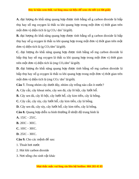 Đây là bản xem th , vu ử i lòng mua tài li u ệ đ xe ể m chi ti t (c ế ó l i ờ gi i ả ) A. đ i ạ lư ng ợ đo khả năng quang h p ợ đư c ợ tính b ng ằ s ố g carbon dioxide lá h p ấ