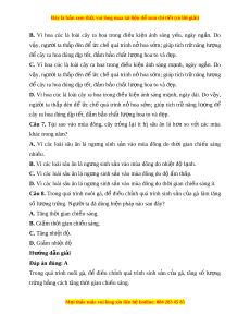 C. Cây lúa sinh s n nh ả ng ư s l ố ư ng h ợ t ạ ít. D. Cây lúa s s ẽ inh s n ả mu n h ộ n. ơ Câu 5. M t ộ số loài th c ự v t ậ chỉ ra hoa sau khi tr i ả qua nhi t ệ độ th p ấ c a ủ mùa đông. Nhóm th c ự v t ậ nào dư i ớ đây g m ồ nh ng l ữ oài th c ự v t ậ có đặc đi m ể trên? A. Lúa mì, b p c ắ i ả , lúa m ch, ạ rau c i ả .
