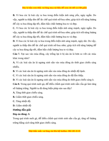 ờ ta đã dùng bi n pháp nào ệ sau đây? A. Tăng th i ờ gian chi u s ế áng. B. Gi m ả th i ờ gian chi u ế sáng. C. Tăng nhiệt đ . ộ D. Gi m ả nhi t ệ độ Hư ng d ớ ẫn gi i ả Đáp án đúng: A