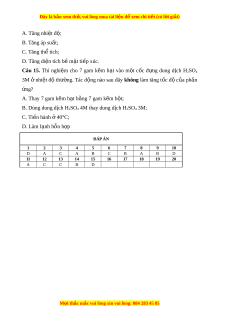 2SO4 4M thay dung dịch H2SO4 3M; C. Ti n hành ế 40°C ở ; D. Làm l nh h ạ n h ỗ p ợ ĐÁP ÁN 1 2 3 4 5 6 7 8 9 10 D A C A B C B A B D 11 12 13 14 15 16 17 18 19 20 A C C B D M i ọ thắc m c