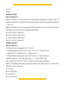D. ô số 7, chu kì 3, nhóm VA. Hư ng d ớ ẫn gi i ả Đáp án đúng là: C Cấu hình electron c a ủ nguyên t F: ử 1s22s22p5. + Số hi u nguyên ệ t c ử a F l ủ à 9 (Z = s p = s ố e ố = 9) F n m ằ ô s ở ố 9. + Nguyên tử F có 2 l p el ớ ectron F thu c chu ộ kì 2.