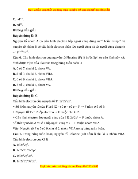Đây là bản xem th , vu ử i lòng mua tài li u ệ đ xe ể m chi ti t (c ế ó l i ờ gi i ả ) C. nd1-10. D. nd1-5. Hư ng d ớ ẫn gi i ả Đáp án đúng là: B Nguyên tố nhóm A có c u ấ hình electron l p ớ ngoài cùng d ng ạ ns1-2 ho c ặ ns2np1-6 và nguyên tố nhóm B có c u ấ hình electron phân l p