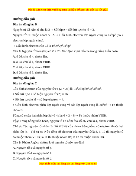 Đây là bản xem th , vu ử i lòng mua tài li u ệ đ xe ể m chi ti t (c ế ó l i ờ gi i ả ) Hư ng d ớ ẫn gi i ả Đáp án đúng là: B Nguyên t C ử l n m