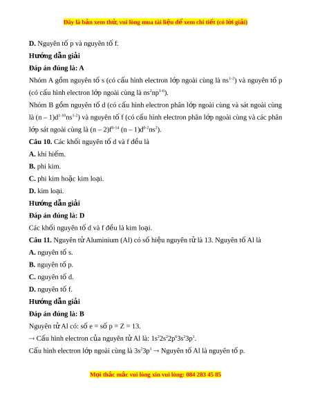 Câu 10. Các kh i nguyên t d và f đ u làố ố ề