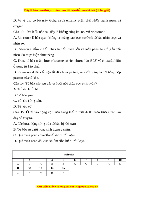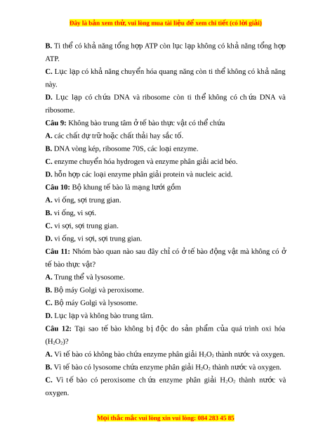 Đây là bản xem th , vu ử i lòng mua tài li u ệ đ xe ể m chi ti t (c ế ó l i ờ gi i ả ) D. Vì t ế bào co b ô may Golgi ch a ư enzyme phân gi i a H2O2 thành nư c ơ và oxygen.