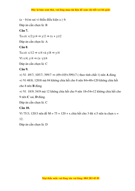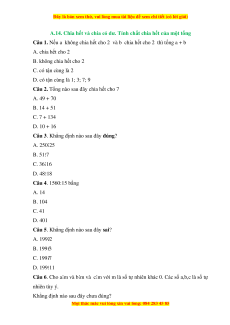 (a − b)⋮m sai vì thiếu điều kiện a ≥ b Đáp án cần chọn là: B Câu 7.