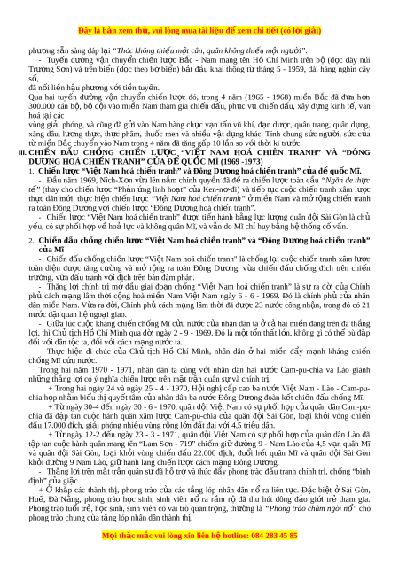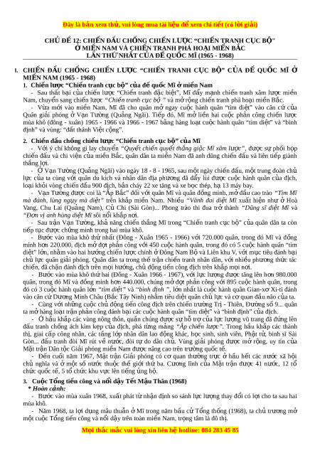 ệ đ xe ể m chi ti t ế (có l i ờ gi i ả ) CHỦ ĐỀ 12: CHI N Ế Đ U Ấ CH N Ố G CHI N Ế LƯ C Ơ “CHI N Ế TRANH C C U B " Ộ Ở MI N Ề NAM VÀ CHI N Ế TRANH PHÁ HO I Ạ Ml N Ể B C Ắ L N Â THƯ NH T Ấ C A Ủ Đ Q