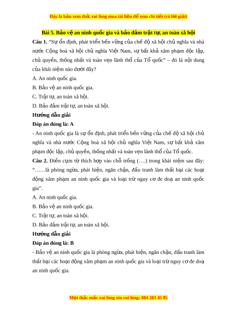 Đây là bản xem th , vu ử i lòng mua tài li u ệ đ xe ể m chi ti t ế (có l i ờ gi i ả ) Bài 5. Bảo v an n ệ inh qu c gi ố a và b o đ ả m ả tr t ậ t , an t ự oàn xã h i ộ