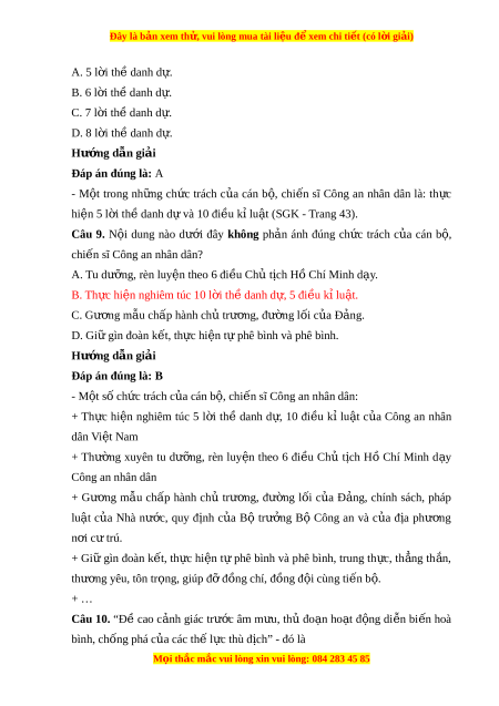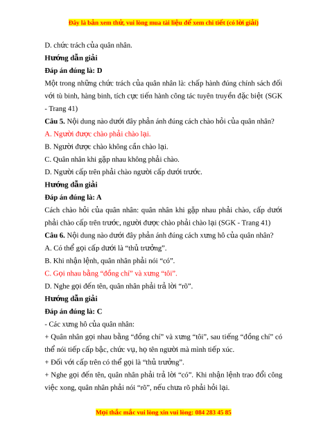 Đây là bản xem th , vu ử i lòng mua tài li u ệ đ xe ể m chi ti t (c ế ó l i ờ gi i ả ) Hư ng d ớ ẫn gi i ả Đáp án đúng là: C - M t ộ số ch c t ứ rách quân nhân: + Th c ự hi n ệ đúng 10 l i ờ thề danh d ự và 12 đi u ề k ỉlu t ậ khi quan h ệ v i ớ nhân dân. + Giữ gìn đoàn k t ế n i ộ b ,