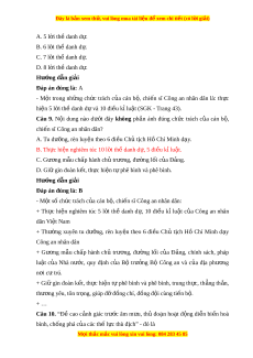 Câu 2. Quân nhân ph i ả th c hi ự n bao nhi ệ êu đi u k ề l ỉ u t ậ ? A. 10 đi u k ề ỉ lu t ậ . B. 11 đi u k ề ỉ lu t ậ . C. 12 đi u k ề ỉ lu t ậ . D. 13 đi u k ề ỉ lu t ậ . Hư ng ớ d n gi ẫ i ả Đáp án đúng là: C - M t ộ trong nh ng ữ ch c ứ trách c a ủ quân nhân là: th c ự hi n ệ 10 l i ờ th ề danh dự và 12 đi u k ề ỉ lu t ậ v i