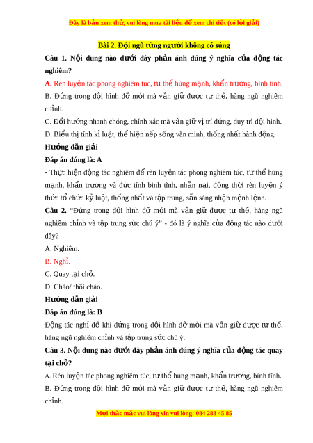 Đây là bản xem th , vu ử i lòng mua tài li u ệ đ xe ể m chi ti t ế (có l i ờ gi i ả ) Bài 2. Đ i ộ ngũ t ng ng ừ ư i ờ không có súng Câu 1. N i ộ dung nào dư i ớ đây ph n