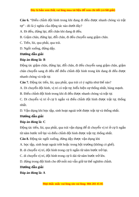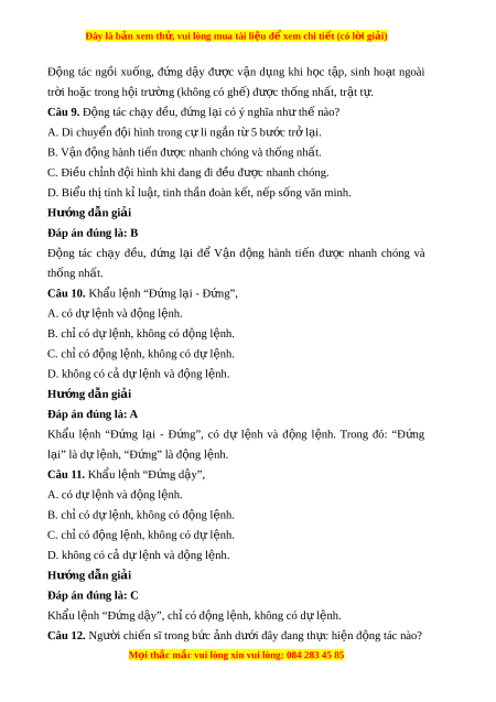 Đây là bản xem th , vu ử i lòng mua tài li u ệ đ xe ể m chi ti t (c ế ó l i ờ gi i ả ) Đ ng ộ tác ng i ồ xu ng, ố đ ng ứ d y ậ đư c ợ v n ậ d ng ụ khi h c ọ t p, ậ sinh ho t ạ ngoài tr i ờ ho c ặ trong h i ộ trư ng ( ờ không có gh ) ế đư c t ợ h ng nh ố t ấ , tr t ậ t . ự Câu 9. Đ ng ộ tác ch y ạ đ u, đ ề ng l ứ i