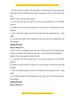 Câu 8. Vũ khí sinh h c ọ không có đ c ặ đi m ể nào dư i ớ đây? A. Lan truy n b ề ng nhi ằ u con đ ề ư ng. ờ B. Ph m ạ vi sát thư ng ơ l n, t ớ h i ờ gian tác h i ạ dài. C. Khó phát hi n, phòng ch ệ ng và ố kh c ph ắ c ụ hi u qu ệ . ả D. Chỉ lan truy n t ề rong ph m ạ vi nh v ỏ i ớ li u ề lư ng l ợ n. ớ Hư ng d ớ ẫn gi i ả Đáp án đúng là: D - Vũ khí sinh h c ọ lan truy n ề b ng ằ nhi u ề con đư ng ờ và có thể lan truy n ề trên lãnh thổ r ng ộ v i ớ li u ề lư ng ợ nh , ỏ bí m t ậ ; ph m ạ vi sát thư ng ơ l n, ớ th i ờ gian tác h i