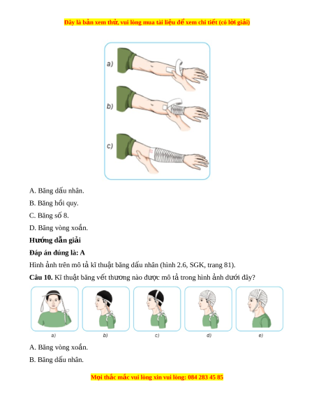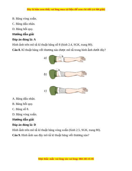 Đây là bản xem th , vu ử i lòng mua tài li u ệ đ xe ể m chi ti t (c ế ó l i ờ gi i ả ) B. Băng vòng xo n. ắ C. Băng d u nhân. ấ D. Băng hồi quy. Hư ng d ớ ẫn gi i ả Đáp án đúng là: A Hình nh ả trên mô t kĩ ả thu t ậ băng s 8 ( ố hình 2.4, SGK, trang 80). Câu 8. Kĩ thu t ậ băng v t ế thư ng nào đ ơ ư c ợ mô t t ả rong hình nh d ả ư i ớ đây? A. Băng d u nhân. ấ B. Băng hồi quy. C. Băng số 8. D. Băng vòng xo n. ắ Hư ng d ớ ẫn gi i ả Đáp án đúng là: D Hình nh ả trên mô t kĩ ả thu t ậ băng vòng xo n