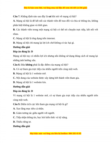 Câu 7. Khẳng định nào sau đây là sai khi nói về mạng xã hội?