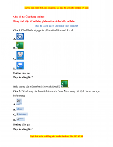 Câu 1. Đâu là biểu tượng của phần mềm Microsoft Excel: A. B. C. D. Hướng dẫn giải