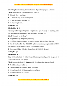 Câu 2. Để sử dụng các hàm tính toán như Sum, Max trong dải lệnh Home ta chọn biểu tượng: A. B. C. D. Hướng dẫn giải