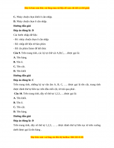 Câu 10. Trên trang tính, dãy số thứ tự 1,2,3,…..được gọi là: A. Tên khối. B. Tên ô. C. Tên cột. D. Tên hàng. Hướng dẫn giải