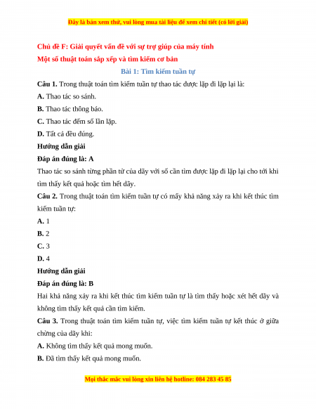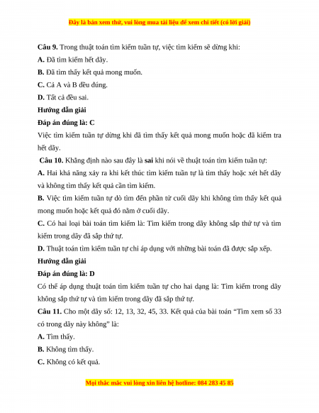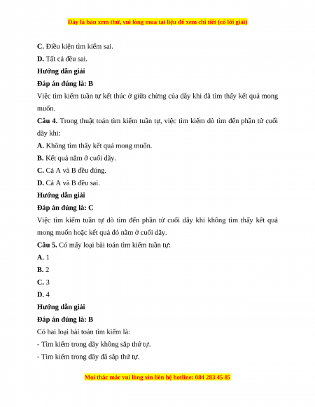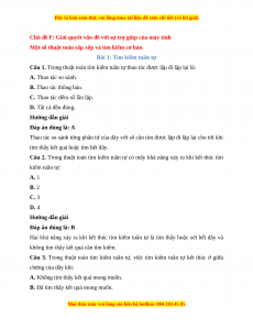 Câu 5. Có mấy loại bài toán tìm kiếm tuần tự: A. 1 B. 2 C. 3 D. 4 Hướng dẫn giải