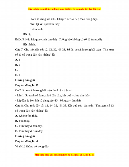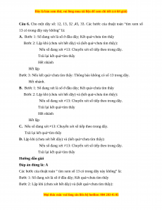 Câu 6. Cho một dãy số: 12, 13, 32 ,45, 33. Các bước của thuật toán “tìm xem số