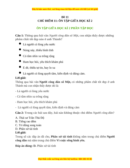 CHỦ ĐIỂM 11: ÔN TẬP GIỮA HỌC KÌ 2