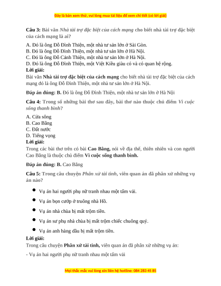Tài liệu được cập nhật liên tục trong gói này từ nay đến hết tháng 3/2024. Chúng tôi đảm bảo đủ số lượng đề đã cam kết hoặc có thể nhiều hơn, tất cả có BẢN WORD, LỜI GIẢI CHI TIẾT và tải về dễ dàng.