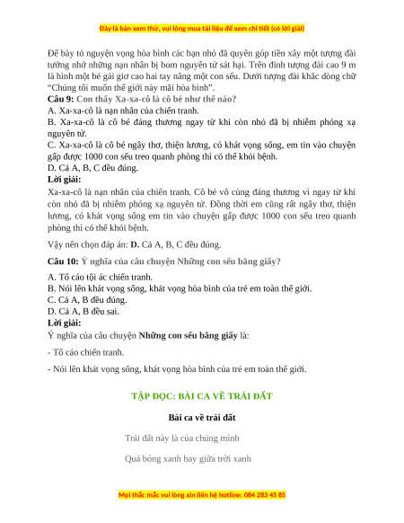 Trắc nghiệm Chủ điểm 2 Tiếng việt lớp 5: Cánh chim hòa bình