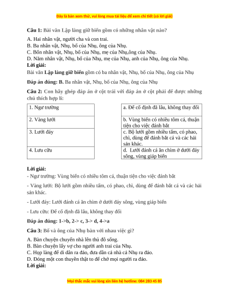 Câu 1: Bài văn Lập làng giữ biển gồm có những nhân vật nào?