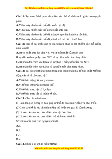 Câu 13: Cho các vai trò sau: (1) Làm tăng s l ố ư ng t ơ bào gi ế úp c t ơ h đa bào s ể inh trư ng và ơ phát tri n. ể (2) Giúp c t ơ h đa ể bào tái sinh nh ng m ư ô ho c ă c quan ơ b t ị n t ổ hư ng. ơ (3) Là c ch ơ s ế inh s n ả c a nhi u u s ê inh v t â đ n bào. ơ (4) Là c ch ơ s ế inh s n ả c a nhi u u l ê oài sinh s n ả vô tinh. Số vai trò c a quá t u rình nguyên phân là A. 1. B. 2. C. 3. D. 4. Câu 14. Kh i ố u ác tinh là hi n t ê ư ng? ơ M i