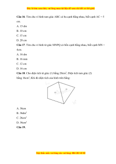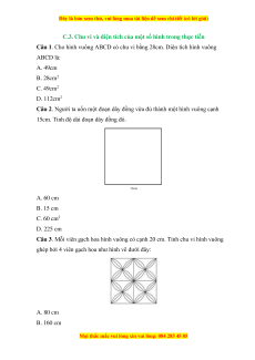 Câu 1. Cho hình vuông ABCD có chu vi bằng 28cm. Diện tích hình vuông