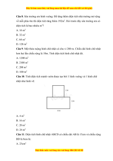 Câu 8. Sân trường em hình vuông. Để tăng thêm diện tích nhà trường mở rộng